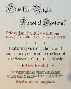 Twelfth Night at Parkway UCC – Last chance for Christmas music!